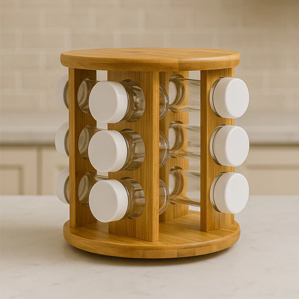 ESPECIERO GIRATORIO 12 FRASCOS DE BAMBU 22X18CM
